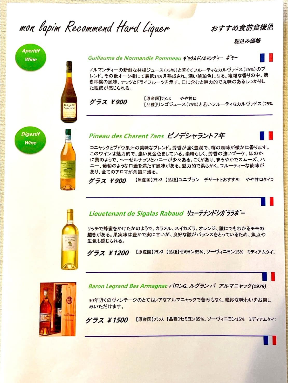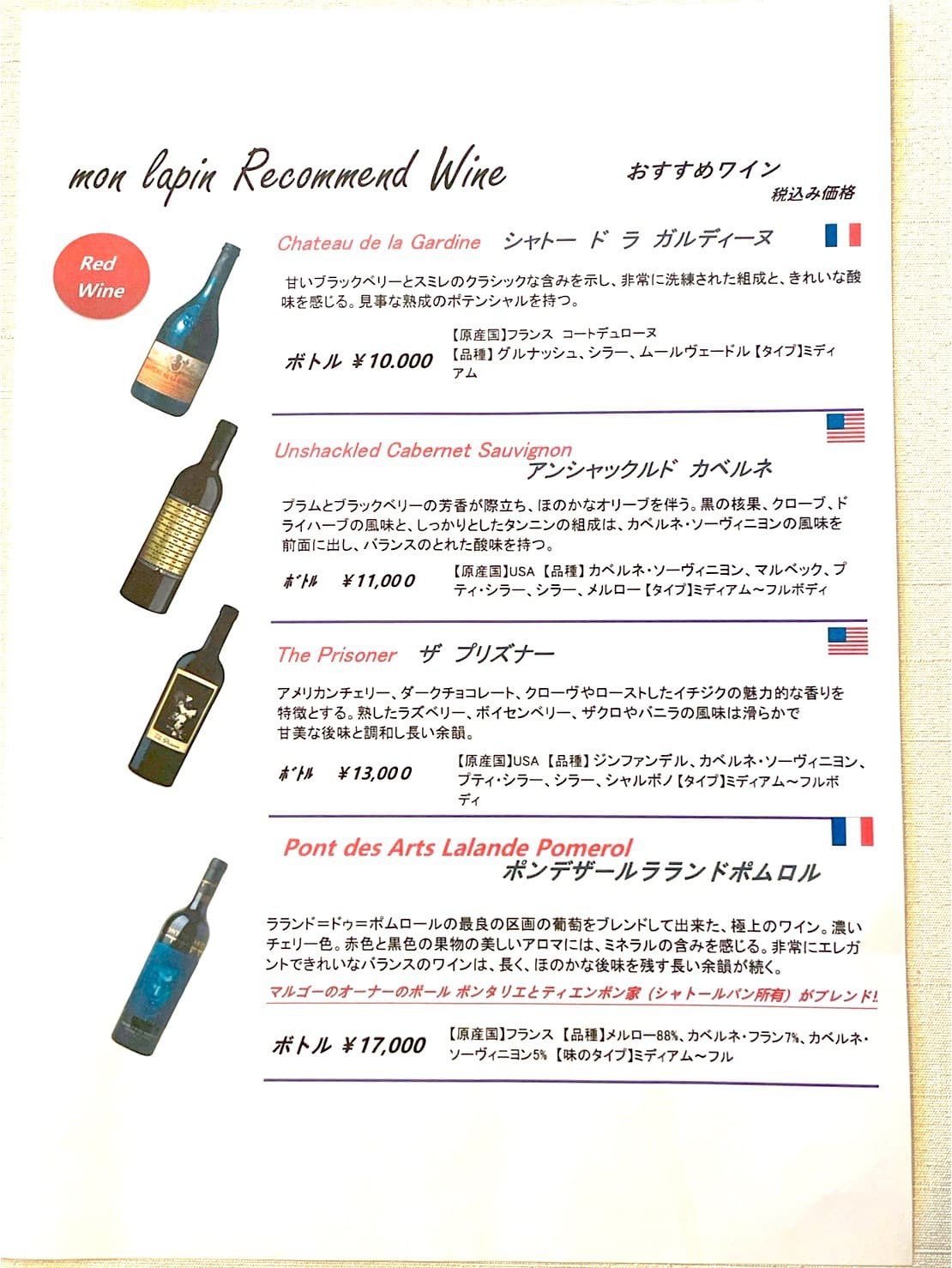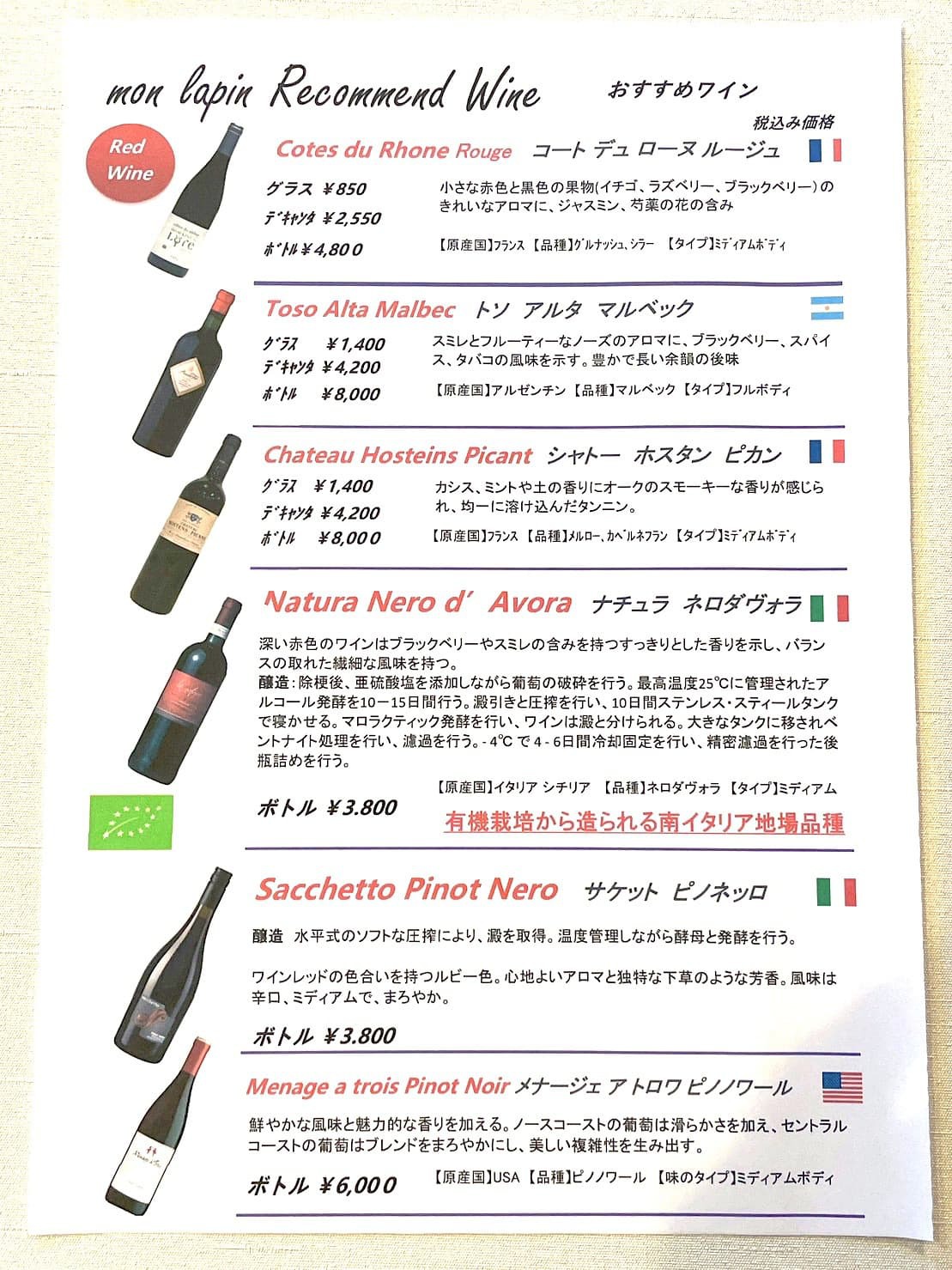 ワインメニュー